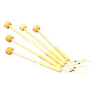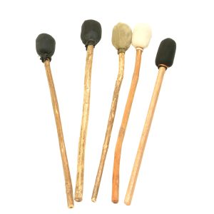 Viele verschiedene Trommel-Schlegel für die Rahmen-Trommel. Je nach Härte des Trommel-Schlegels ändert sich Intensität und Klang.